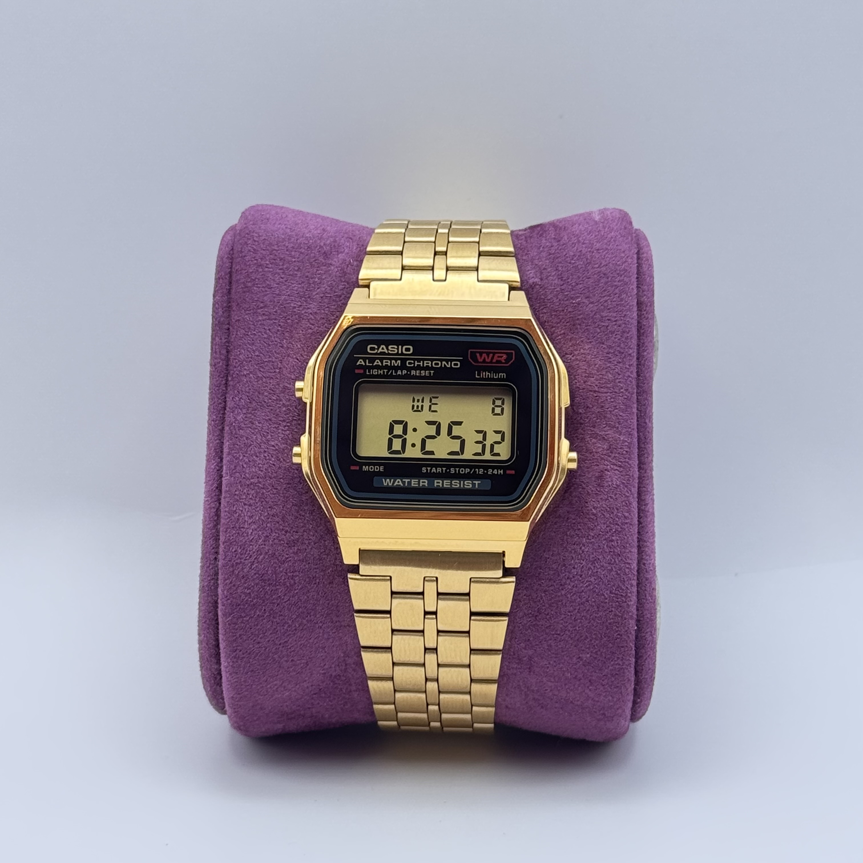 ساعة إيقاف بدقة 1/100 من الثانية قدرة القياس: 59'59.99" أوضاع القياس: الوقت المنقضي، وقت الانقسام، أوقات المكانَين الأول والثاني المنبه/إشارة الوقت بالساعة منبه يومي إشارة الوقت بالساعة ضوء LED ضوء LED:أخضر التقويم التلقائي (مُعيّن على 28 يومًا لشهر فبراير) الدقة: ±30 ثانية في الشهر