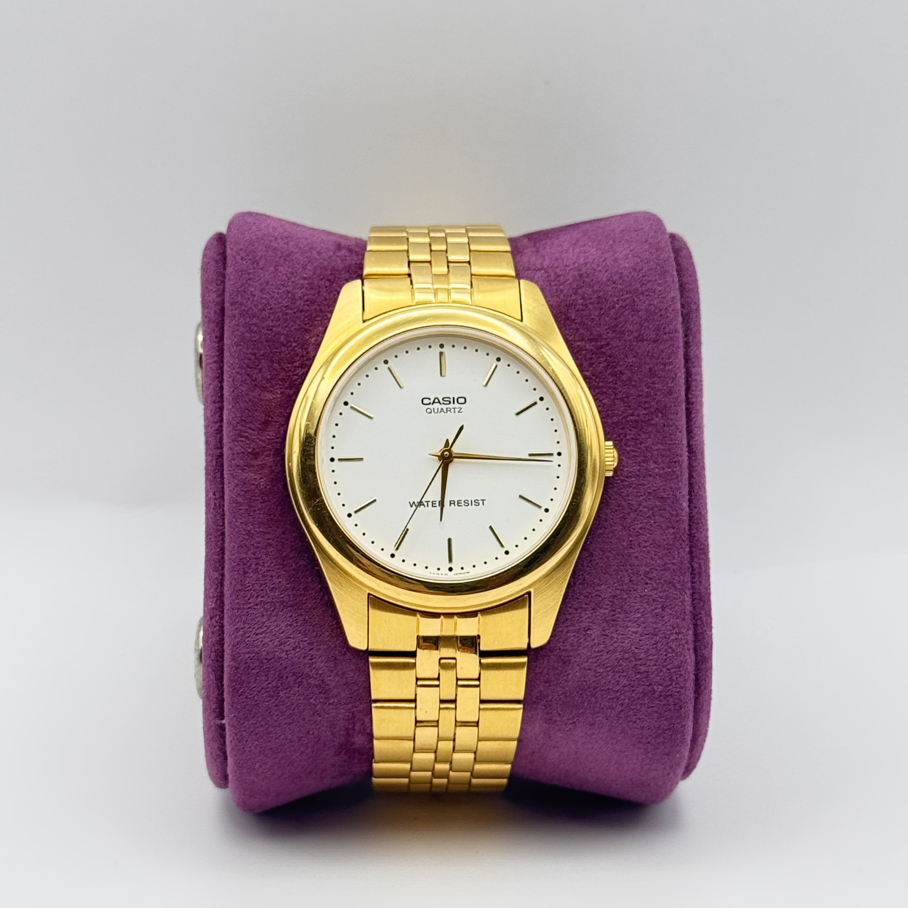 شكل السلعة مستدير نوع مادة المينا معدن نوع العرض تناظري قطر الهيكل 36 ملي متر سمك الهيكل 7 ملي متر مادة السوار ستانلس ستيل عرض السوار 18 لون السوار ذهبي لون المينا أبيض الخصائص المميزة قارئ سهل وزن السلعة 260 جرام الحركة كوارتز مقاومة عمق الماء: 30 متر