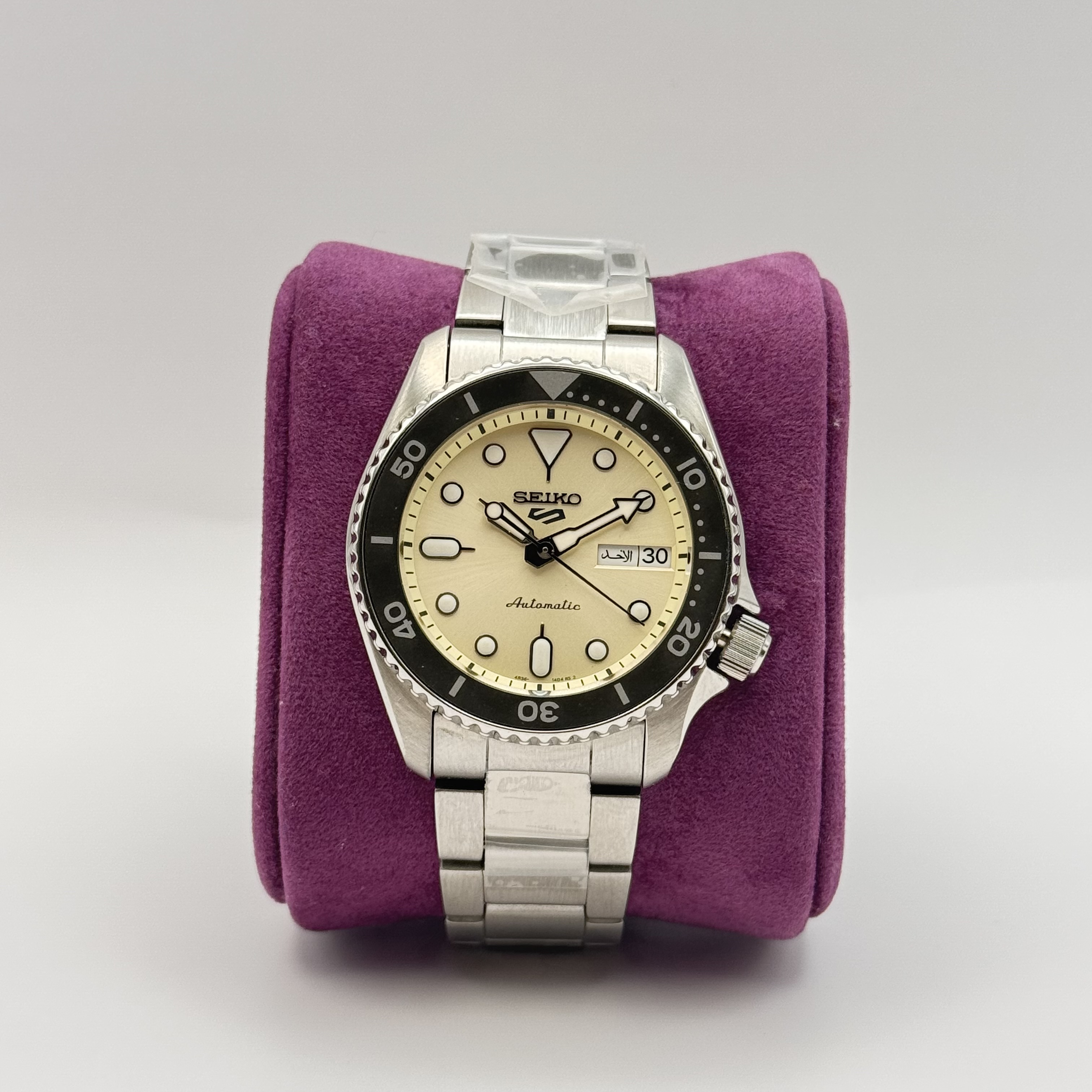 الحركة رقم العيار 4R36 نوع الحركة أوتوماتيكية مع تعبئة يدوية احتياطي الطاقة تقريبًا 41 ساعة الجواهر 24 الوظائف وظيفة إيقاف عقرب الثواني عرض اليوم/التاريخ العلبة/السوار مادة العلبة فولاذ مقاوم للصدأ حجم العلبة السُمك:12.1 مم القطر:38.0 مم من العروة إلى العروة:44.2 مم الكريستال Hardlex LumiBrite Lumibrite على العقارب والمؤشرات المشبك مشبك ثلاثي الطي مع زر ضغط للإفراج طول السوار 205.0 مم المسافة بين العروات 20 مم تفاصيل أخرى مقاومة الماء 10 بار مقاومة مغناطيسية 4800 أمبير/متر الوزن 140.0 جرام الميزات إطار دوار أحادي الاتجاه مشبك ثلاثي الطي مع قفل آمن غطاء خلفي شفاف وبرغي
